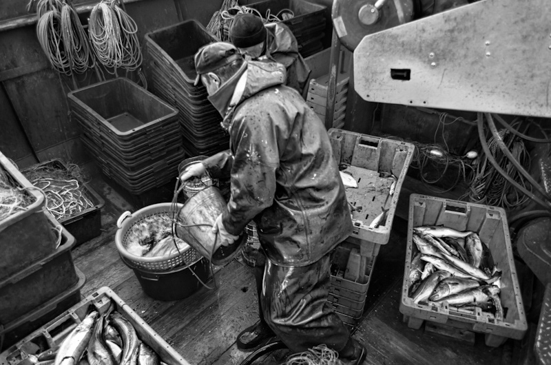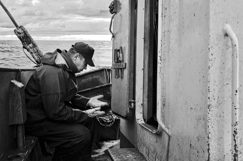 Nocny połów dorsza na Bałtyku w okolicach Unieścia i Mielna, na małym kutrze, którego właścicielami są ojciec - Zbigniew Stempiński i syn- Damian Stempiński. Jedna doba z życia bałtyckich rybaków. Noc i dzień 28/29.09.2013 r. - Unieście.